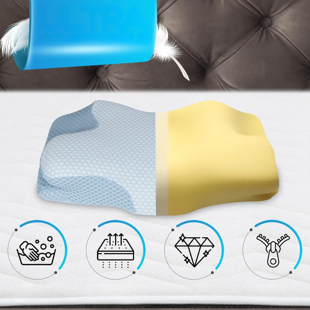 The memory foam cushions your neck and shoulders, easing tension and reducing morning pain.